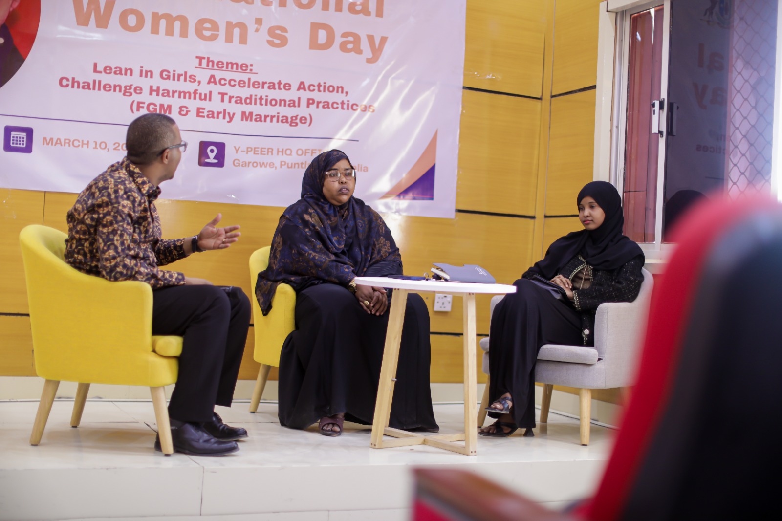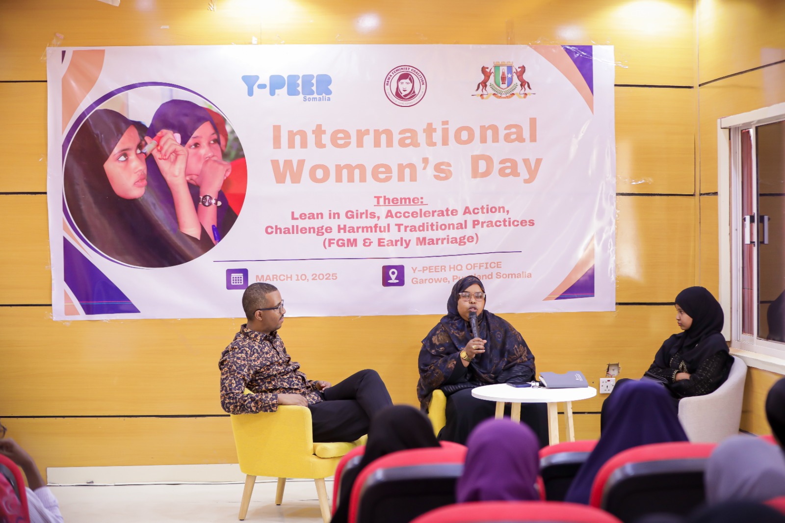 On March 10, 2025, Hawa Feminist Coalition and Y-PEER Somalia jointly organized a powerful commemoration event for International Women’s Day in Garowe, Puntland, Somalia. Held at the Y-PEER Conference Hall, the event focused on the theme “Lean in Girls, Accelerate Action, Challenge Harmful Traditional Practices (FGM & Early Marriage).”